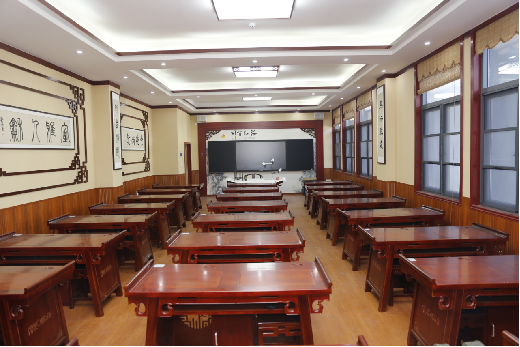 硬笔书法与板书实训室主要承担书法、书法鉴赏、教学技能训练、教育研习等课程的实践教学。主要培养学生的粉笔字、钢笔字的书写与板书技能。该实训室也是水墨兰亭书法社活动基地。