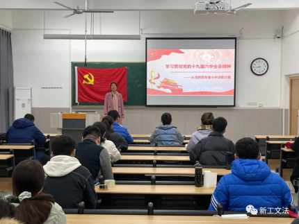 为了进一步深入学习贯彻党的十九届六中全会精神,我院法律系直属党支部在11月16号下午三点于学院楼b-317教室开展以“学习贯彻党的十九届六中全会精神 从党的百年奋斗中汲取力量”为题的专题党课学习活动。此次会议由我院党总支副书记刘松梅老师主持召开,我院法律系直属党支部全体师生党员参加。