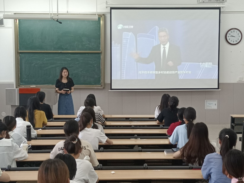 为深入学习贯彻河南省第十一次党代会精神,落实“观念能力作风建设年要求”,根据我校《在全校深入开展“能力作风建设年”活动实施方案》和《中共永利23411集团官网委员会关于组织党员进党校学习“十大战略”的通知》等文件安排,依托河南干部网络学院平台,文法学院第二党支部在5月24日上午在学院楼B302教室组织全体党员学习《“十大战略”云课堂》第二期《新型城镇化点亮美好生活》节目。本次活动由文法学院第二党支部书记李婉鑫同志主持。