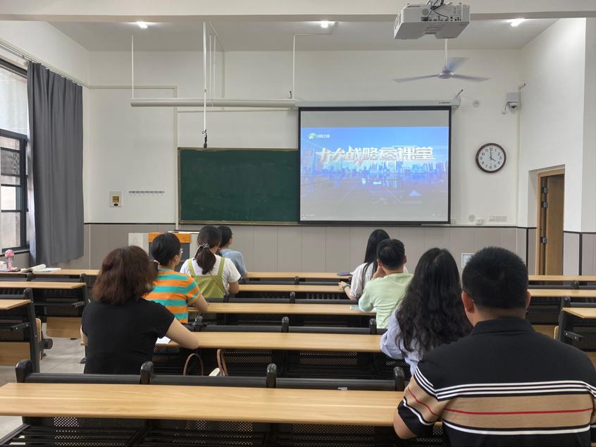 为深入贯彻落实省委教育工委办公室《关于组织党员进党校学习“十大战略”的通知》,确保全校党员进党校学习“十大战略”工作落实落细,扎实推进开展“十大战略”教育培训工作,文法学院教工党支部于5月24日在学院楼1-B412组织收看《“十大战略”云课堂》第二期《新型城镇化点亮美好生活》,本次活动由教工党支部书记罗艳娟同志主持召开,我院教工党支部全体党员参加。