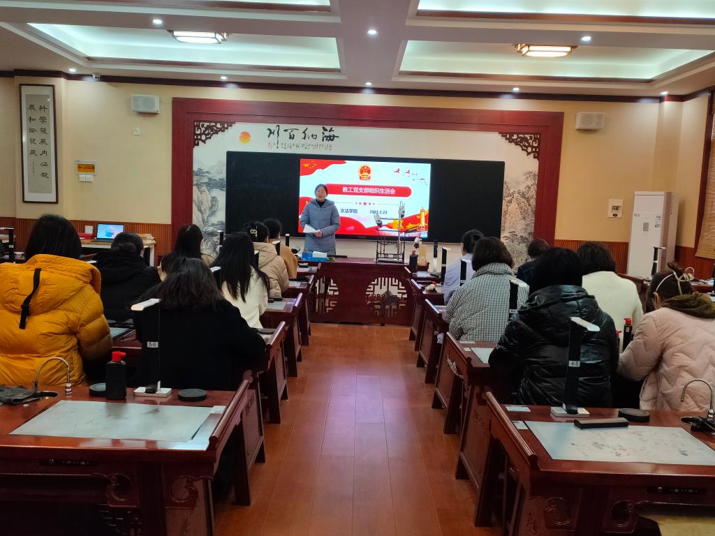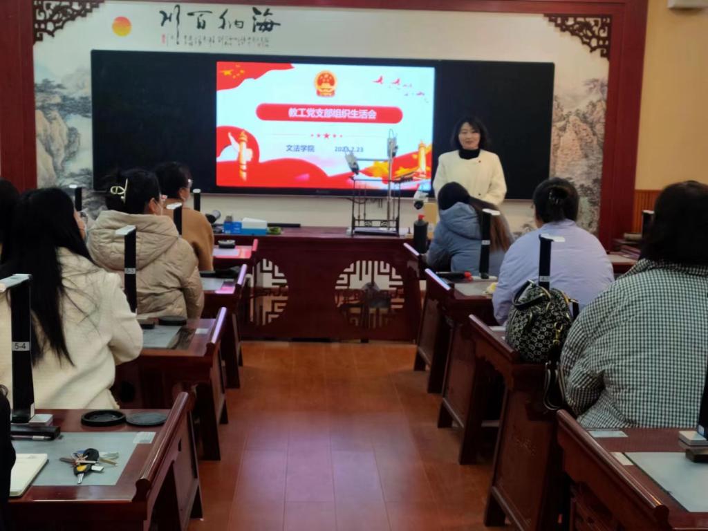2023年2月23日下午,文法学院教工党支部在学院楼B319召开2022年度专题组织生活会暨民主评议会。 学院教工党支部成员出席会议,会议由学院党委副书记刘松梅主持。