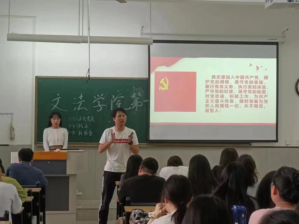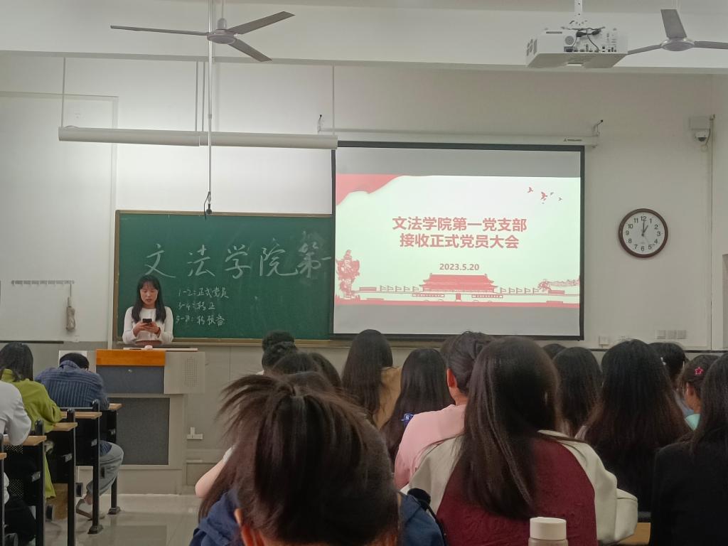 2023年5月31日13点,文法学院第一党支部转正大会与接收新党员大会在学院楼B-211教室成功举行。本次大会由王梦娇主持,参加此次大会的有第一党支部全体党员以及我支部28期发展对象。