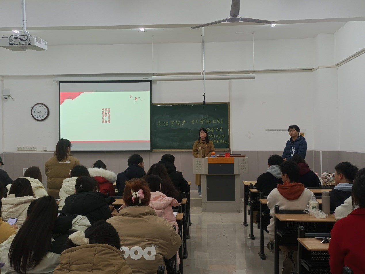 2023年12月7日上午8点30分,我院第一党支部转正大会与接收新党员大会在学院楼B-207教室成功举行。本次大会由王梦娇主持,参加此次大会的有第一党支部全体党员以及我支部29期发展对象。