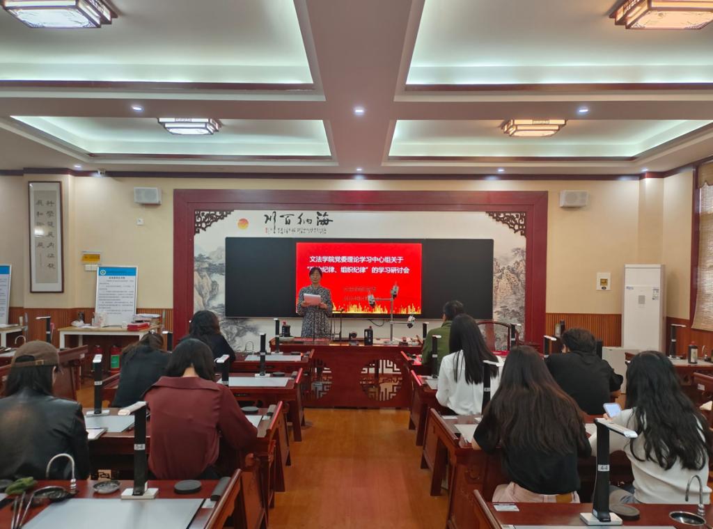 为进一步强化纪律意识,增强政治定力,4月25日下午,我院党委中心组召开关于“政治纪律、组织纪律”的学习研讨会,本次会议由我院党委副书记刘松梅主持,文法学院党委中心组成员和各支部书记参加。