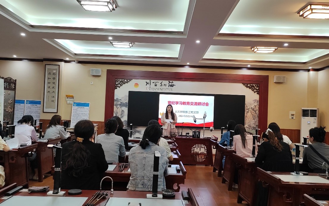为进一步深化对加强党的纪律建设重要性和推动教工党员强化遵守纪律的自觉性,于5月16日下午,我院教工党支部在学院楼B319组织党纪学习教育交流研讨会。本次会议由我院教工党支部组织委员张心巧主持,全体教工党员参加。