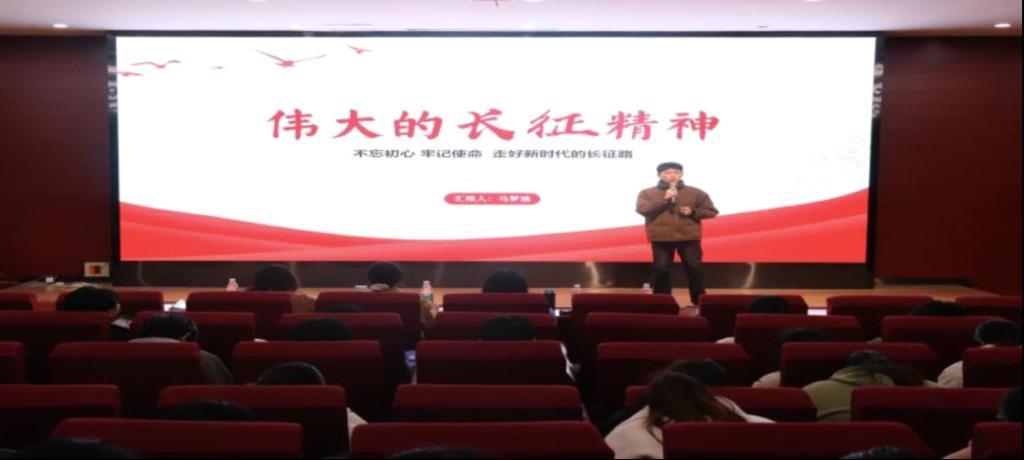 来自法学233的马梦涵同学汇报的主题是《伟大的长征精神》,他结合PPT的材料,用自己的话向大家讲述长征故事,例如,遵义会议、四渡赤水、飞夺泸定桥、爬雪山等著名事件,用故事向大家展示的伟大的长征精神。