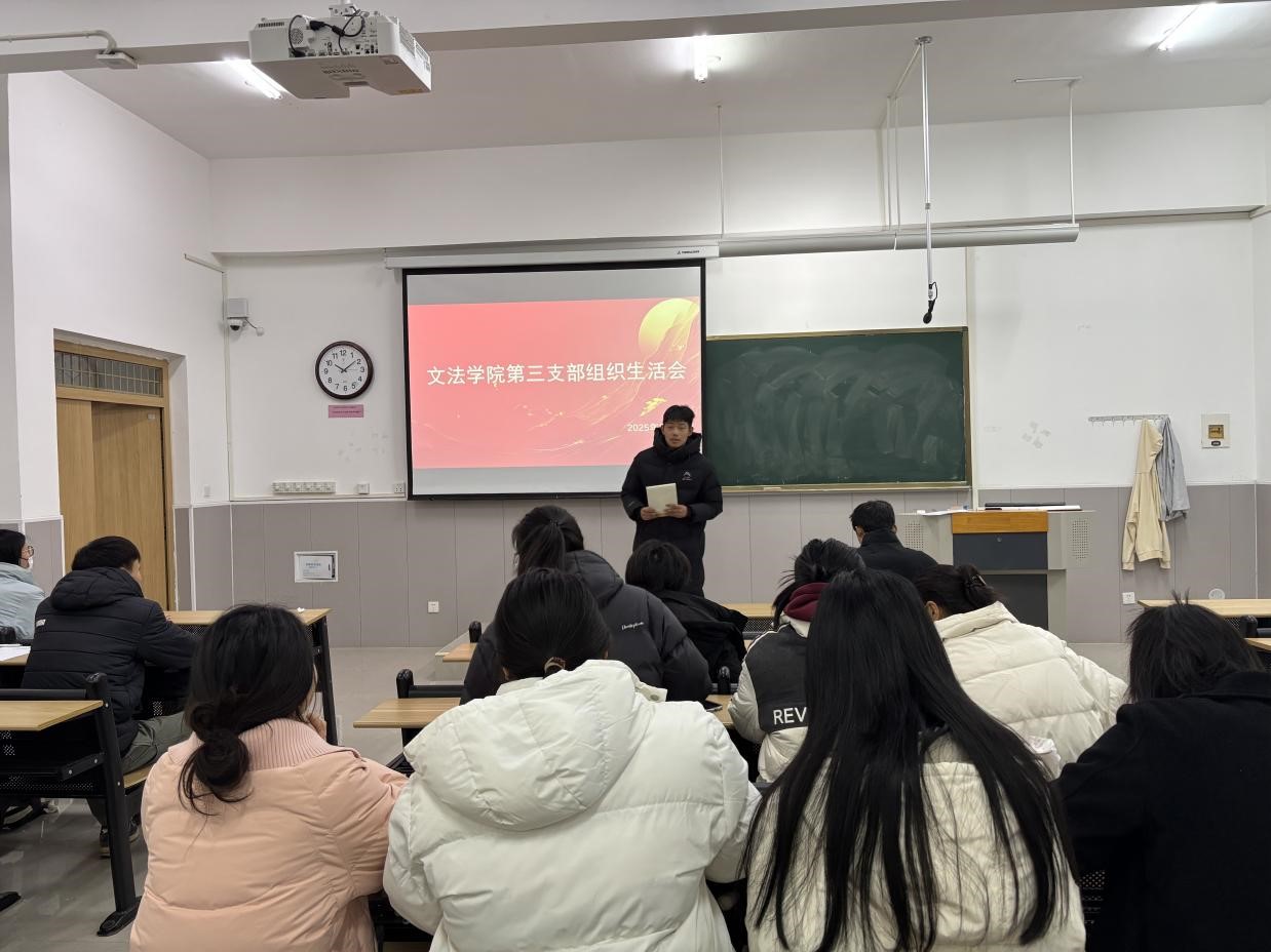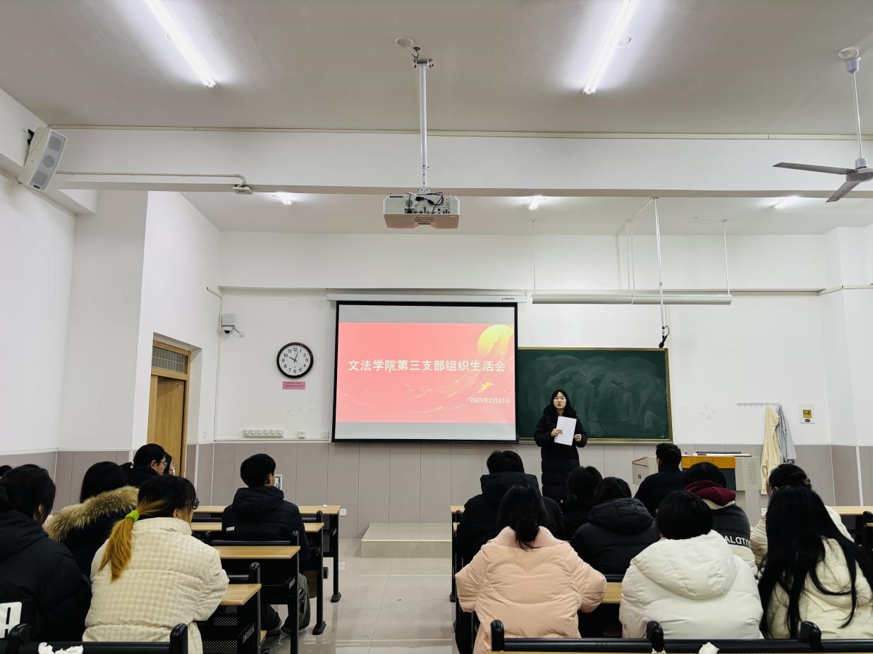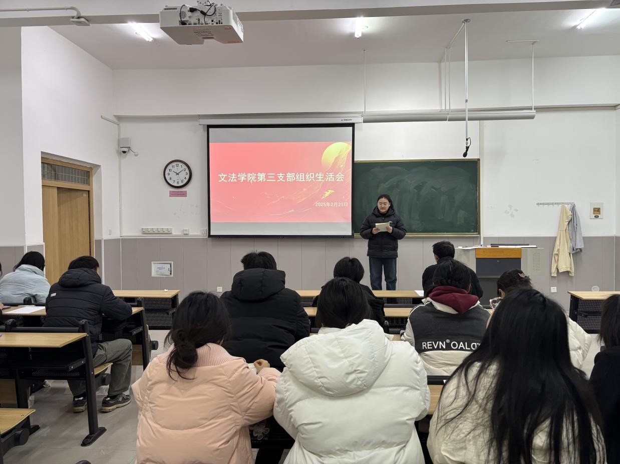 为进一步强化党员思想建设,切实提升党组织的凝聚力与战斗力,文法学院第三党支部于2月21日上午10点,在学院楼1-B207召开了组织生活会暨民主评议党员大会。本次会议由支部书记张琦同志主持,支部全体党员及预备党员齐聚一堂,共同围绕批评与自我批评这一种重要议题展开深入交流。