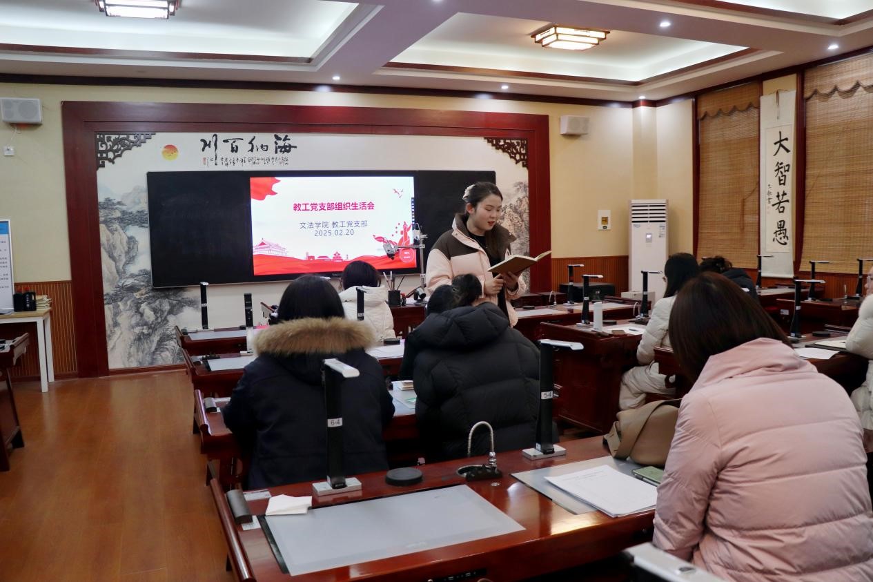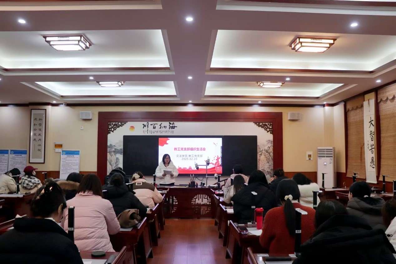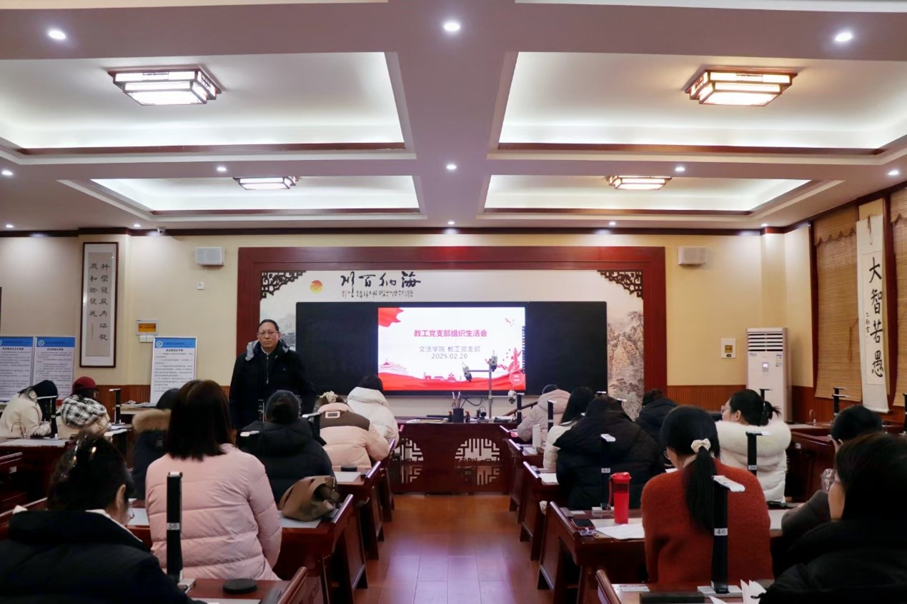 为深入学习贯彻习近平新时代中国特色社会主义思想,巩固深化党纪学习教育成果,2025年2月20日下午,文法学院教工党支部在学院楼B319召开组织生活会。会议由教工党支部书记、常务副院长罗艳娟主持,学院党委书记、院长黄进才,党委副书记刘松梅及全体教工党员参加。
