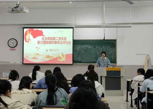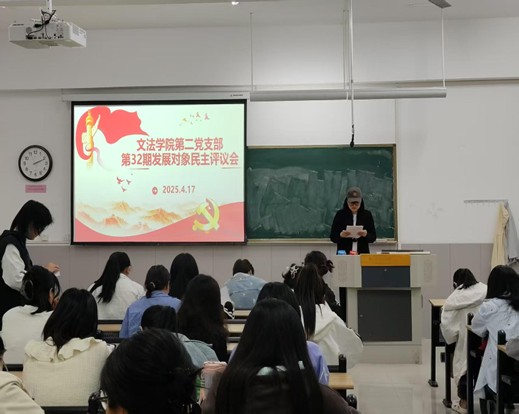 为切实做好党员发展工作,严格党员发展流程,增强党组织凝聚力和战斗力。2025年4月17日下午,文法学院第二党支部在学院楼B-207召开了第32期发展对象民主评议会。会议由支部书记李婉鑫同志主持,第二党支部全体成员参加了会议。