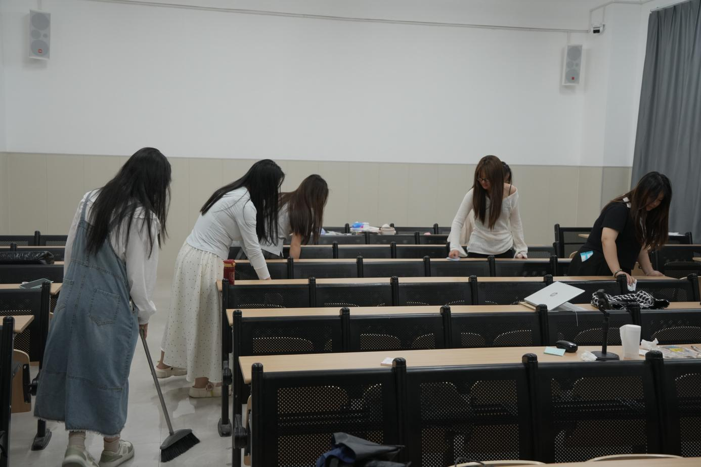 为深入贯彻落实党的二十大精神,强化发展对象的责任担当与服务意识,推动理论学习成果转化为实践行动。5月13日晚,文法学院第三党支部在教学楼三307教室开展教室卫生清扫志愿服务活动,通过躬身实践锤炼党性修养,厚植劳动精神中的为民情怀。