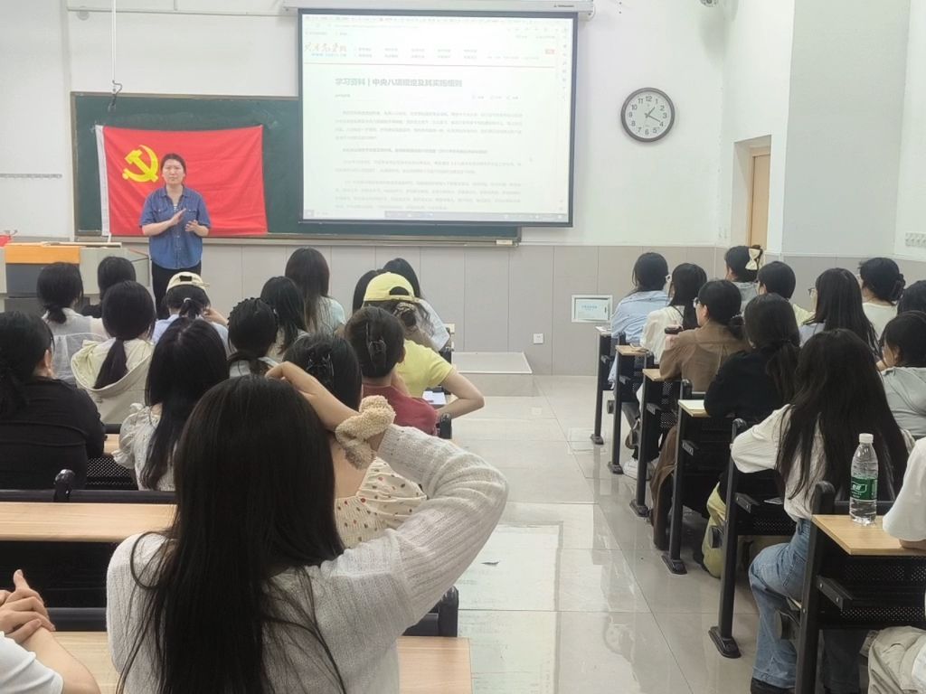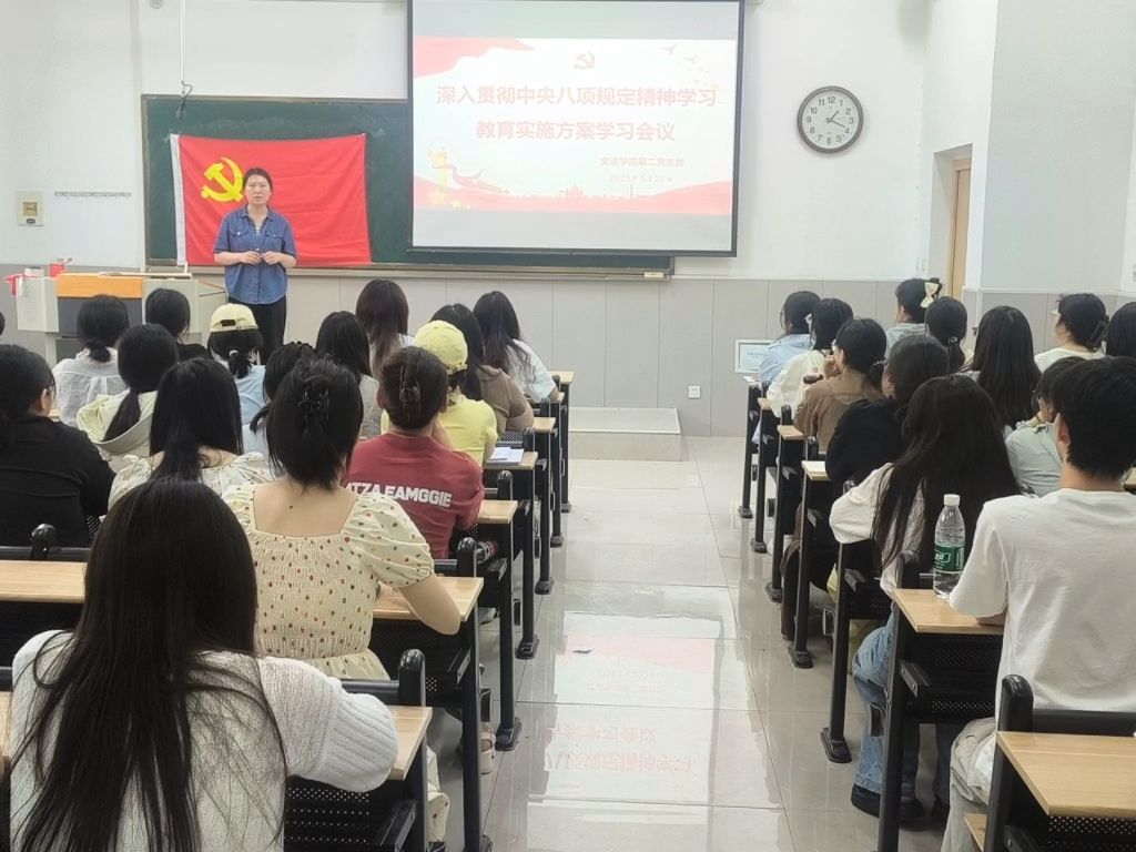 为深入学习贯彻习近平总书记关于加强党的作风建设的重要论述,切实落实中央八项规定及其实施细则精神,文法学院第二党支部于2025年5月22日在学院楼B-110召开深入贯彻中央八项规定精神学习教育会议。此次会议由李婉鑫书记主持,全体党员参加。
