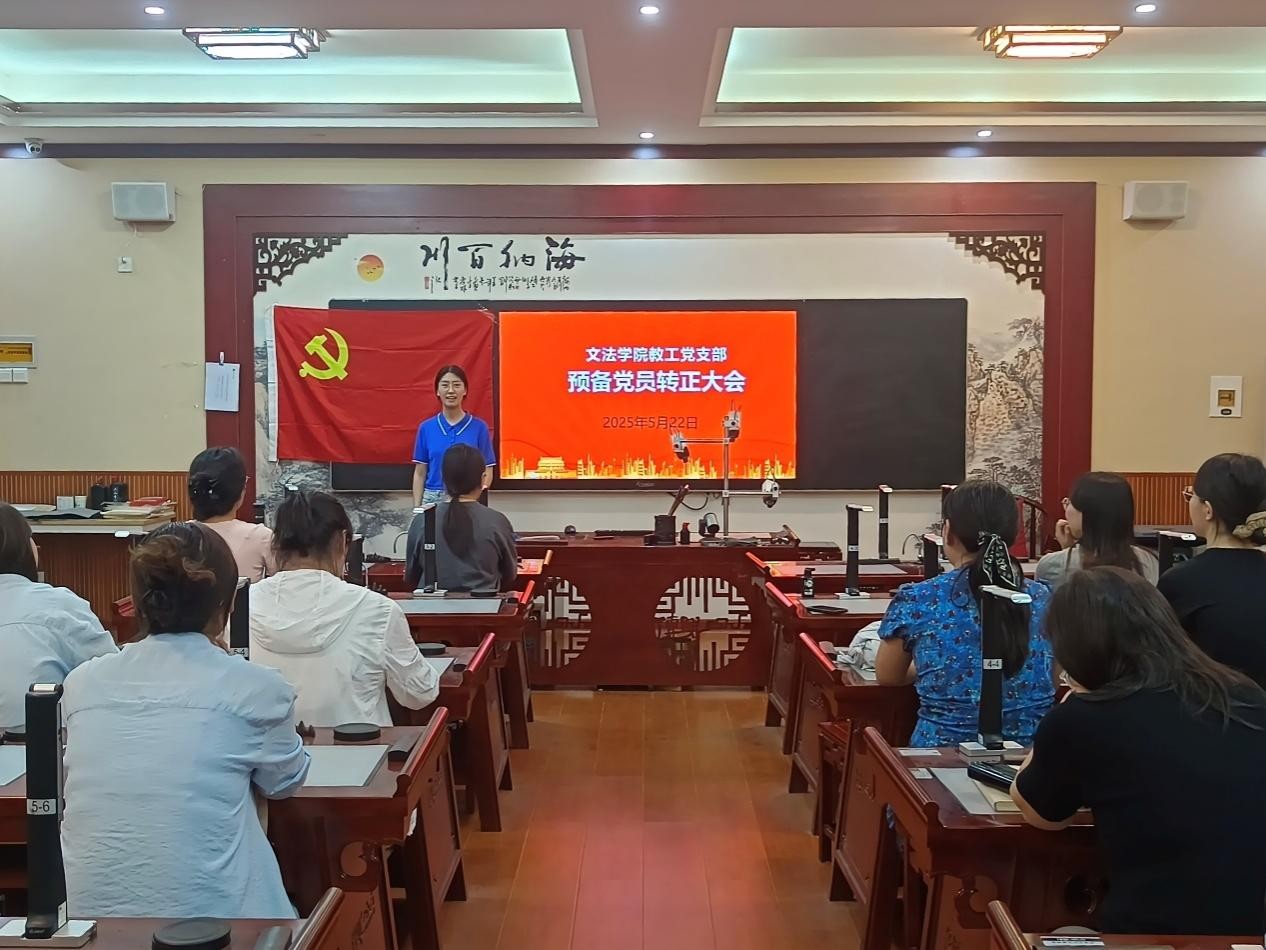 为了进一步加强党员队伍建设,提升党员发展质量。我院教工党支部于2025年5月22日下午,在学院楼1-B-319召开接收预备党员及预备党员转正大会。本次大会严格按照党的组织程序进行,教工党支部组织委员李静主持会议,全体党员参加。