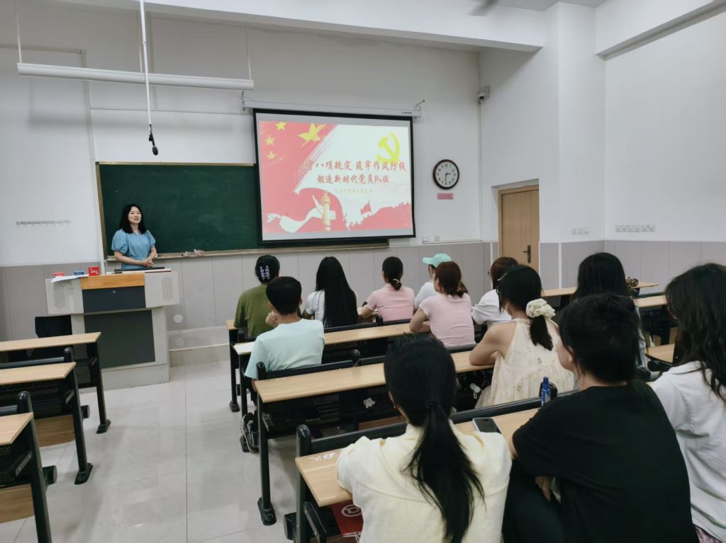 6月22日下午,文法学院第三党支部于学院楼B107开展“严守中央八项规定 筑牢纪律作风防线”专题党课。本次党课由张琦老师主讲,文法学院第三党支部全体中共党员及预备党员参与学习,旨在深化党员对中央八项规定的认知,强化纪律意识与党性修养 。