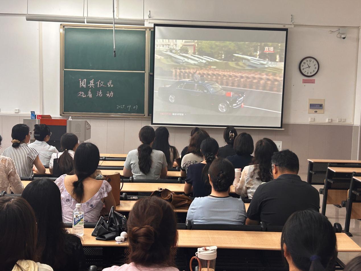 9月3日上午,为深入贯彻落实习近平总书记在纪念中国人民抗日战争暨世界反法西斯战争胜利80周年阅兵式上的重要讲话精神,进一步加强教工党员的爱国主义情怀,激发奋进力量,文法学院教工党支部在学院楼B101组织开展集中观看纪念中国人民抗日战争暨世界反法西斯战争胜利80周年阅兵式的主题党日活动,此次活动全体教工党员参加。