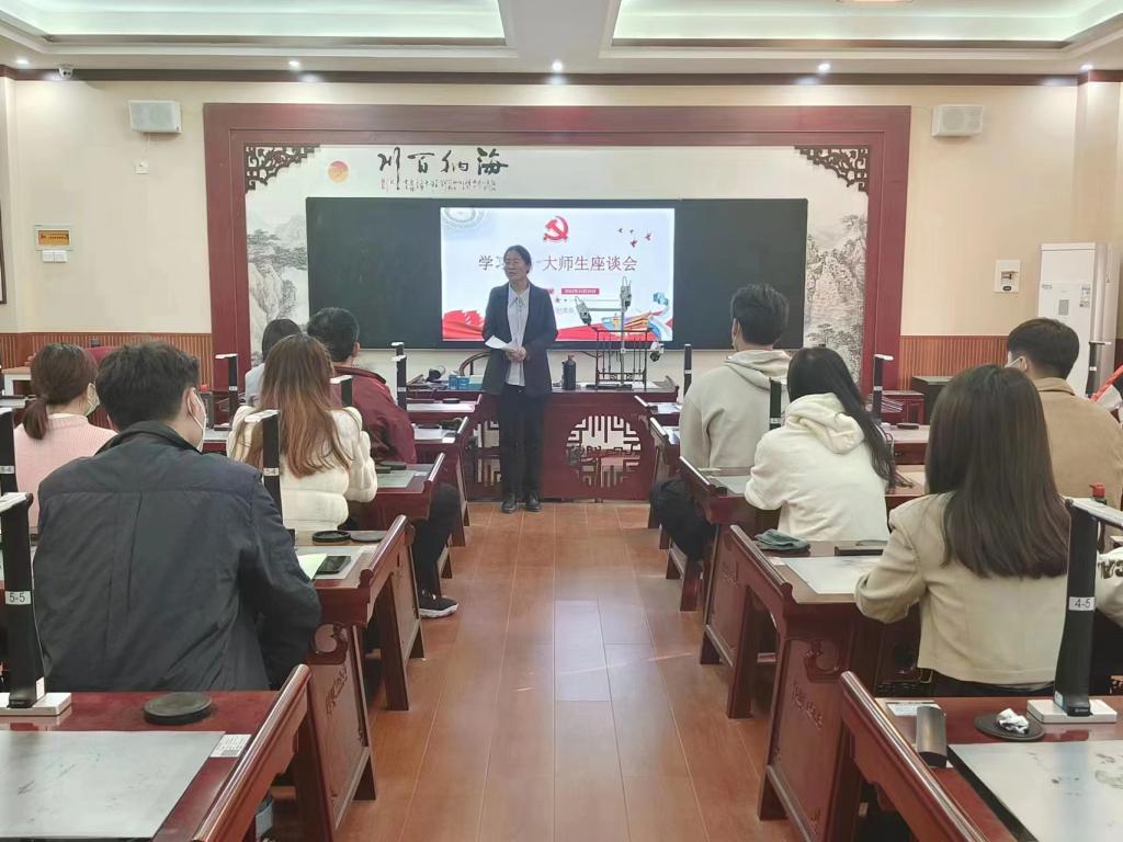 为进一步深入学习贯彻党的二十大精神,永利23411集团官网文法学院于10月27日下午在学院楼1B319书法实验室召开学习贯彻二十大精神师生座谈会。此次座谈会由文法学院党委副书记刘松梅主持,学院在校教师党员和部分学生党员代表参加。