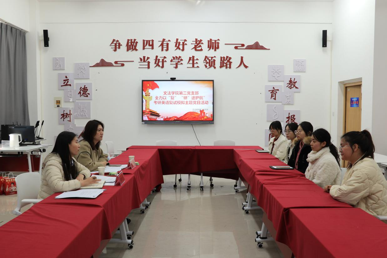 此次考研英语复试模拟活动,为考生们搭建起与专业教师深度交流的桥梁,让学生在模拟实战中提升口语表达、应变及逻辑思维能力,明确自身不足与改进方向,也体现了学院以学生为中心的教育理念和对人才培养的高度重视,并且进一步加强了与外国语学院之间的交流与合作。文法学院第二党支部将继续发挥服务学生作用,营造浓厚的学习互助氛围,助力学生实现考研梦想,为学院人才培养和学生发展注入强劲动力。