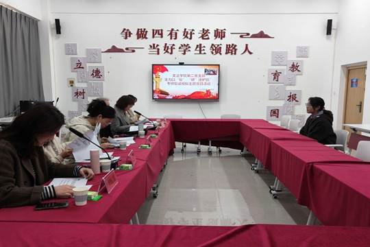 为助力考研学子备战研究生复试,切实提升面试应对能力,文法学院第二党支部联合汉语国际教育教研室于3月19日上午9点在学院楼B-314通过线上与线下两种方式开展考研复试模拟活动。此次活动由我院汉语国际教育专业带头人赵之昂教授、汉语国际教育教研室主任冯莉娟、文法学院团委书记李婉鑫、汉语国际教育专业教师王玉玮、曹林林、常雪菡担任面试考官。