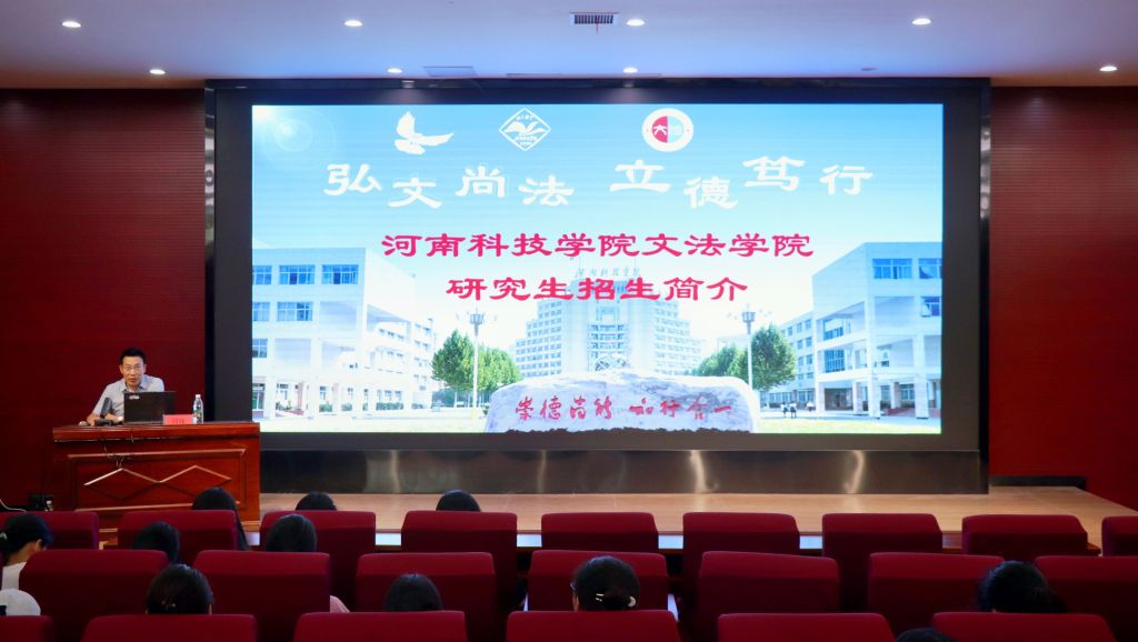 为进一步帮助学生了解考研形势,深入理解高校最新招生政策,全面掌握考研信息,6月12日下午,河南科技学院文法学院副院长刘锋于学院楼报告厅开展考研招生宣传活动,本次会议由我院常务副院长罗艳娟主持,我院学生积极参与。