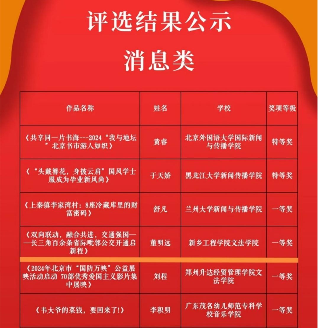 此次奖项的获得是我院秉持着“ 课赛一体化”教育理念的成果之一。未来,我院将不断努力创新,鼓励学生积极参与各类专业竞赛,不断提升自己的专业技能和综合素质,引导学生用心观察生活, 深入思考社会,用文字记录下时代的变迁和人民的呼声,展现出新一代新闻人的责任与担当,培养更多具有社会责任感、创新精神和具备实践能力的优秀人才。