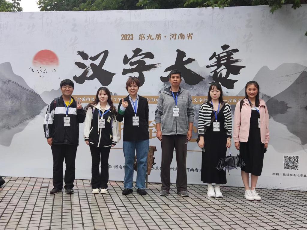 根据河南省教育厅办公室《关于举行“第九届河南省汉字大赛”决赛的通知》(教社语函〔2023〕321号)要求,第九届河南省汉字大赛决赛经专家评审,共有549人获高校组奖项、123人获优秀指导老师奖项。其中,我校文法学院雷炳华同学荣获第九届“河南省汉字大赛”二等奖,刘素丽同学、张恒源同学、杨杭玉同学荣获第九届“河南省汉字大赛”三等奖,创下我校参加汉字大赛以来最好成绩。此次比赛由文法学院罗艳娟副院长和朱雪珂老师指导,崔征和石子依老师带队。