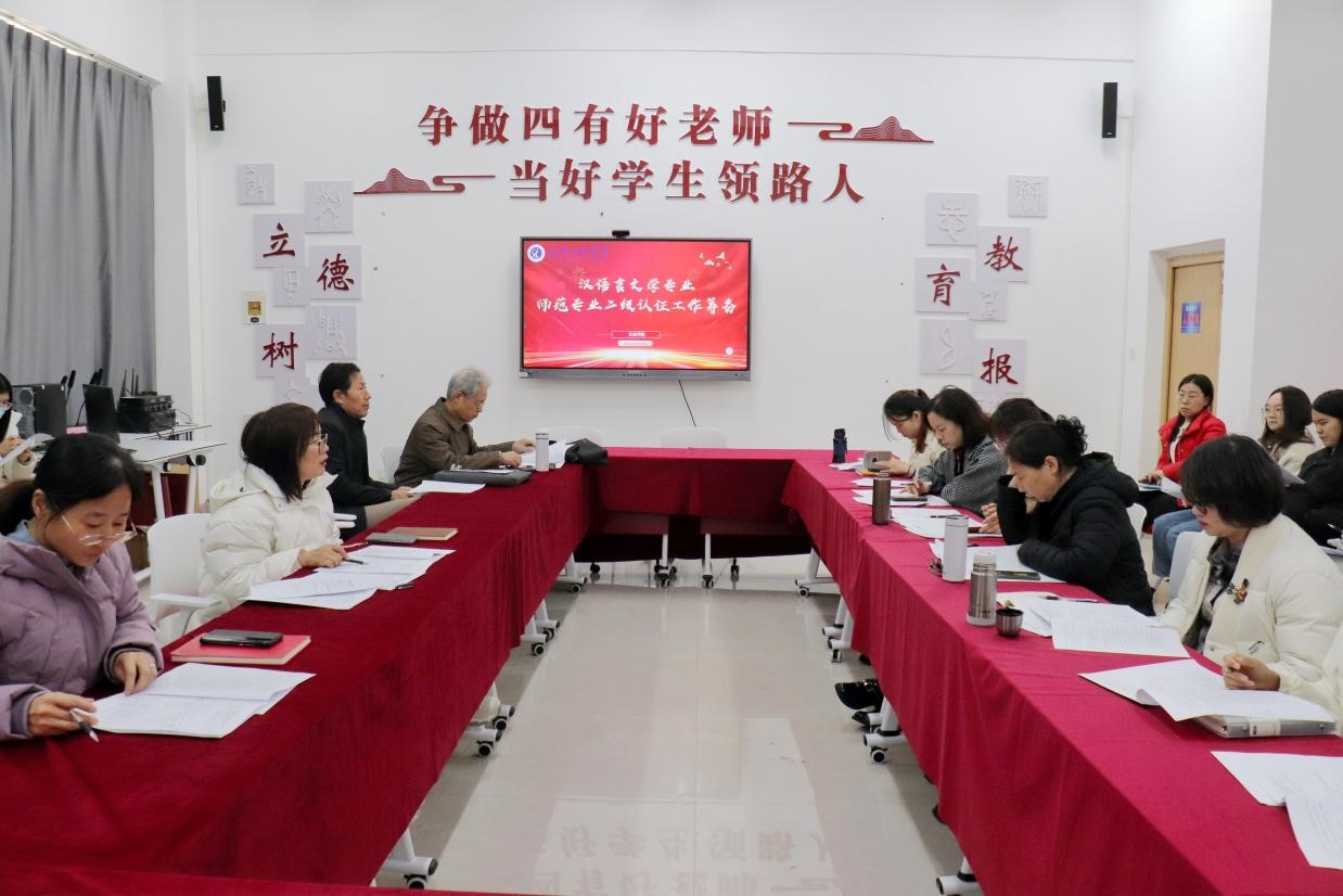 罗艳娟详尽阐述了申请阶段的具体工作规划,对每位成员的职责分工进行了明确界定,特别是针对十门核心课程,她着重指出需围绕思政引领、知识传授、能力培养与反思提升四大维度,进行全面而深入的梳理与优化。她强调,各项工作之间紧密相连,各责任人需严格按照时间节点,以高标准严要求完成任务。此外,学院还将在线上平台开设师范专业认证专栏,实时更新工作进展,强化内外部沟通,确保信息交流的畅通无阻。汉语言文学教研室主任王雪还进行了专业而细致的指导,着重讲解了课程目标达成度分析报告的撰写技巧及评估流程中的关键环节。