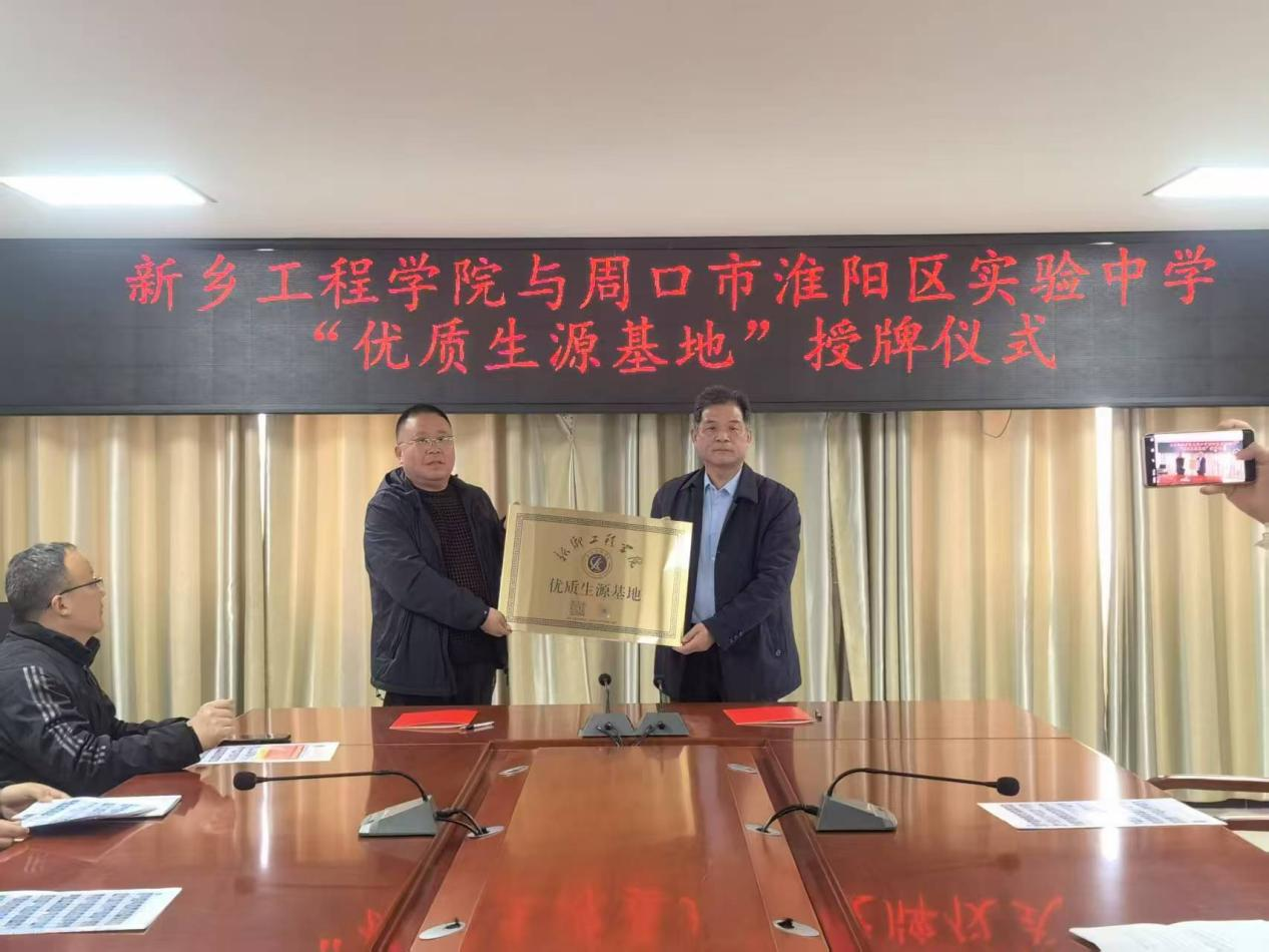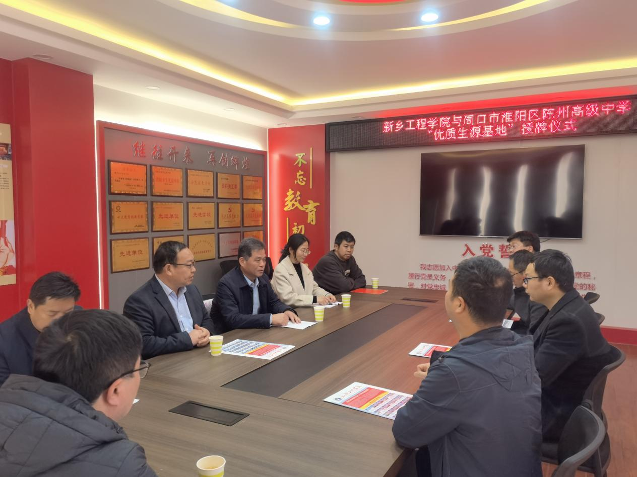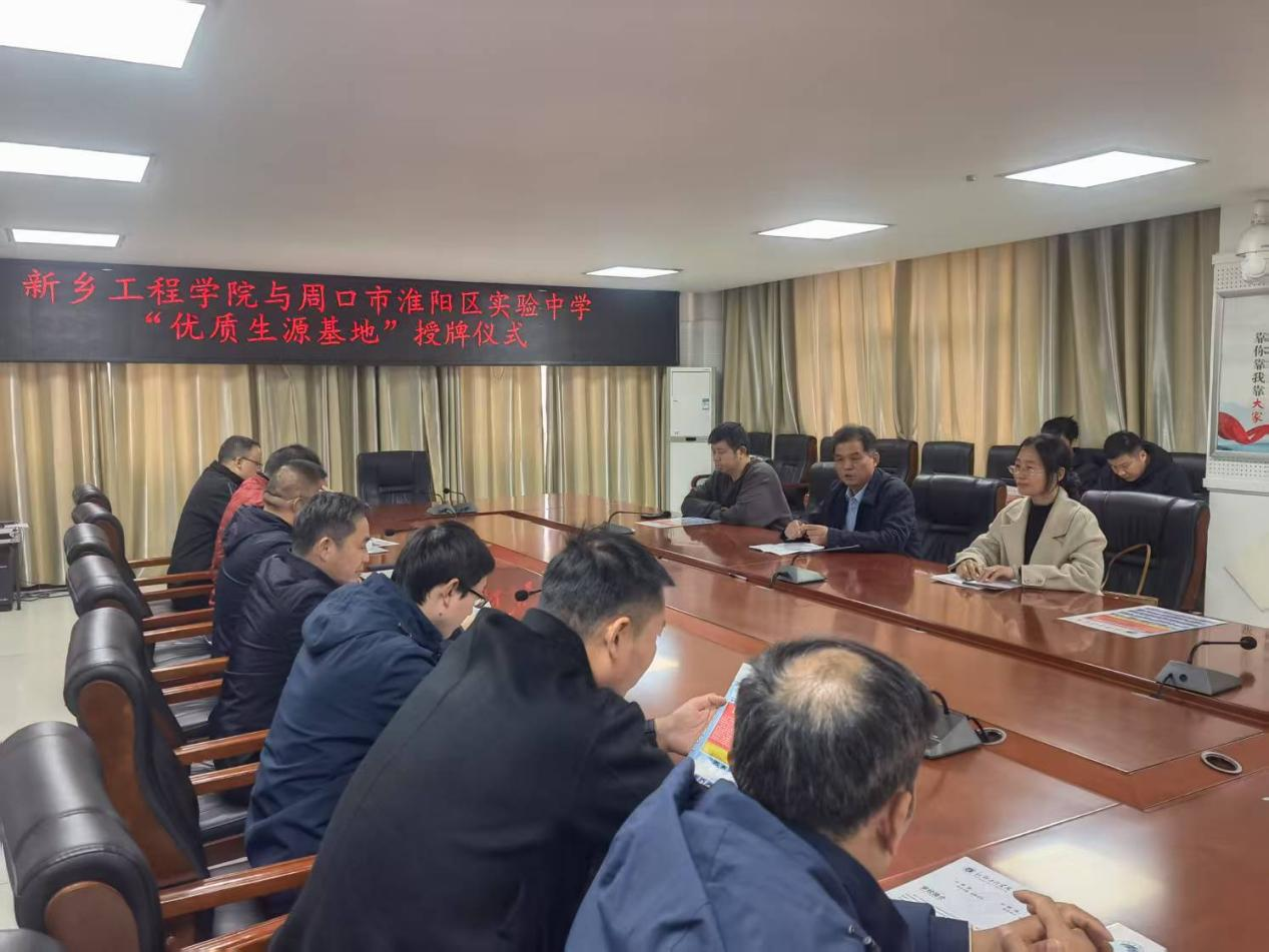 在周口市淮阳区实验中学,该校副校长郭勇、领导班子成员和教师代表参加了招生宣传座谈会。座谈交流会上,校长助理李帅军详细介绍了我校的办学历史、专业设置、办学特色与优势等情况,并就学校的专业优势、招生政策、校园文化等方面与该校老师进行了深入交流。