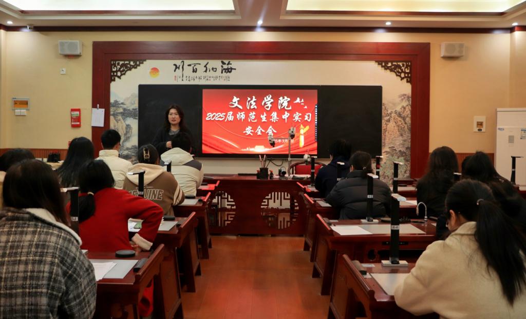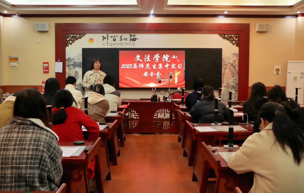 为深入贯彻落实新时代教育强国战略,扎实推进师范生教学实践工作,提升师范生教育教学能力,我院于3月7日在学院楼B319召开2025届师范生教育实习安全会议。我院汉语言文学教研室主任王雪、汉语国际教育教研室主任冯莉娟、团委书记李婉鑫、21级中文辅导员段博宇以及实习指导老师出席此次会议,2025届全体集中实习师范生参与。