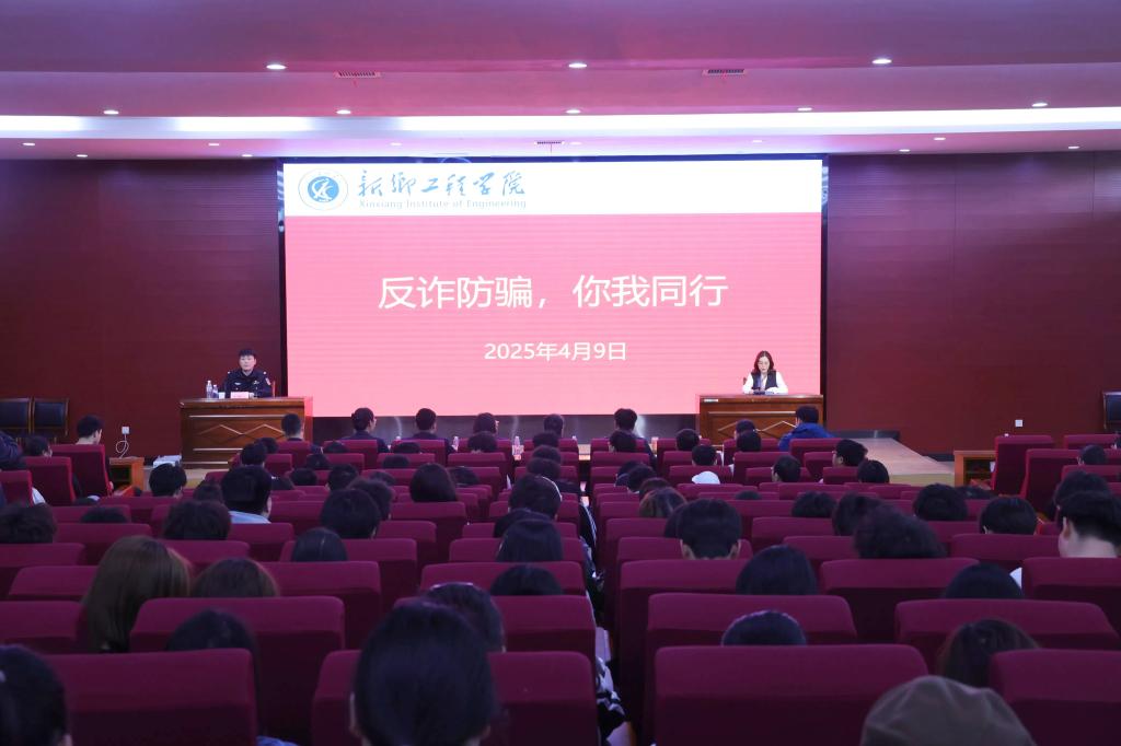 为增强师生反诈意识,构建平安校园,2025年4月9日下午,我校联合中国建设银行新乡分行在学院楼X2报告厅举办“反诈防骗,你我同行”主题宣传讲座。副校长赵一鹏,中国建设银行新乡分行高级客户经理茹祥群、机构业务部总经理刘雪雁、新飞大道支行行长齐咸铭及相关工作人员共计200余名师生代表参加活动。
