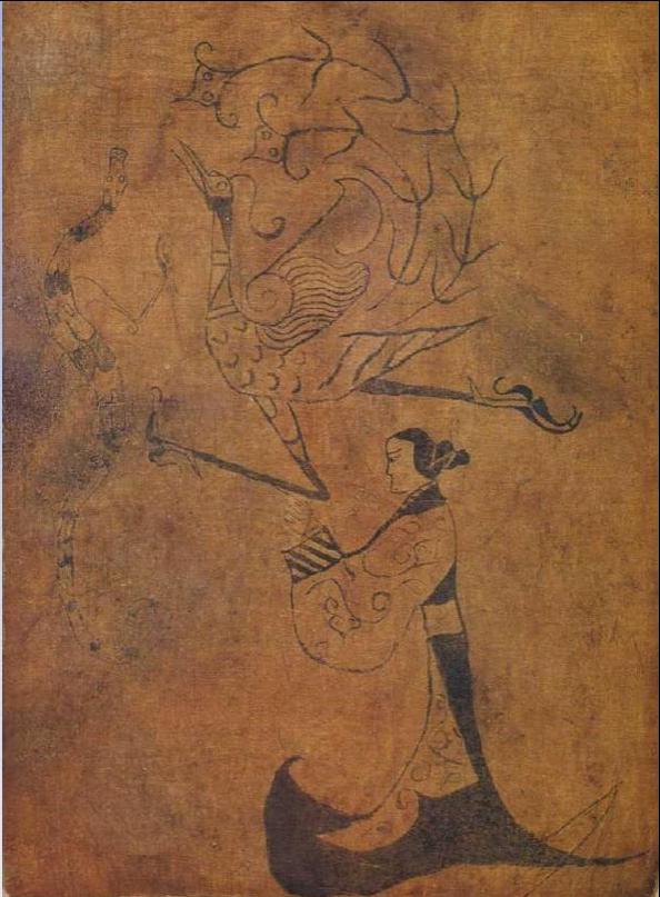 主题:据考古学家说,这是一个盛装打扮的女巫。图画的主题是描绘这个女巫为死者祝福,祈愿神化的龙与凤引导死者的灵魂登天升仙。