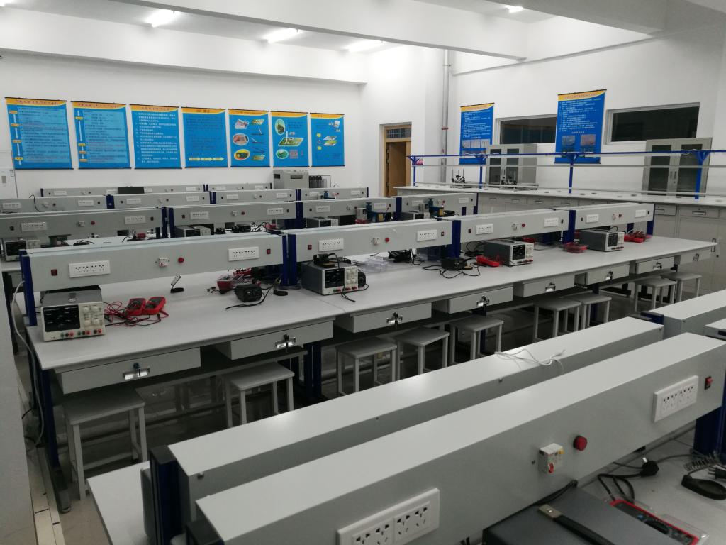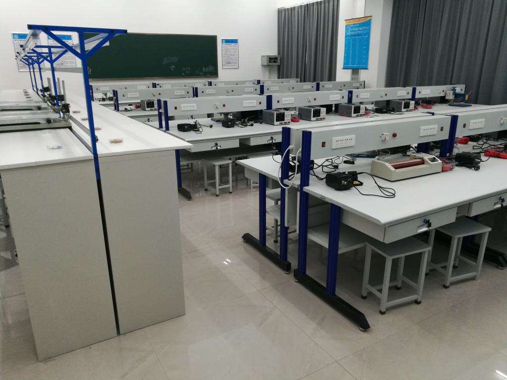 主要包含电子实训台35台、四合一制版系统1套、变频无刷高速精密台钻4台、贴片流水工作台1套、手动丝网印刷机2台、精密裁板机1台、智能虚拟仪器创新实验系统4套、热风拆焊台4台、回流焊炉1台、电脑3台,设备总价值59万余元。实验室可以用于所有实验、实习中关于电路板的转印、腐蚀、制版、组装、调试以及电子元器件拼装、电子产品制作等环节的准备、培训及维护等工作。