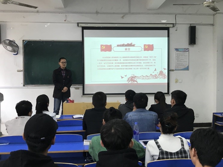 4月14日,为在电气工程系全体党员当中开展学习十九大精神的新热潮,电气工程系党总支书记廖志雄在12号教学楼218教室开展专题党课,全体师生党员聆听了党课。
