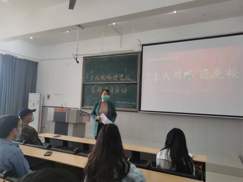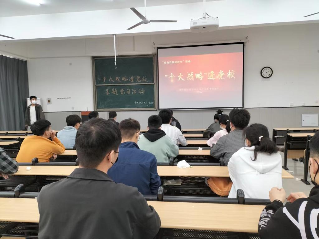 院党总支党总支副书记武庆东首先阐述了实施创新驱动、科教兴省、人才强省战略提出的时代背景和重大意义,然后各党支部党员分别观看了“十大战略”进党校系列课程视频。