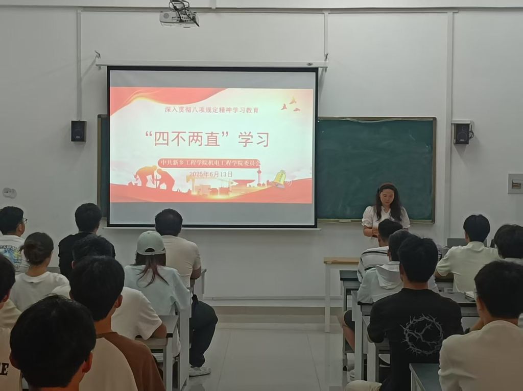 此次专题学习,进一步强化了机电工程学院全体党员的纪律意识和责任意识。学院党委表示,下一步将严格对照上级要求,开展自查自纠工作,建立健全长效监督机制,确保中央八项规定精神学习教育取得实效,为学院高质量发展提供坚强的纪律保障和作风支撑。