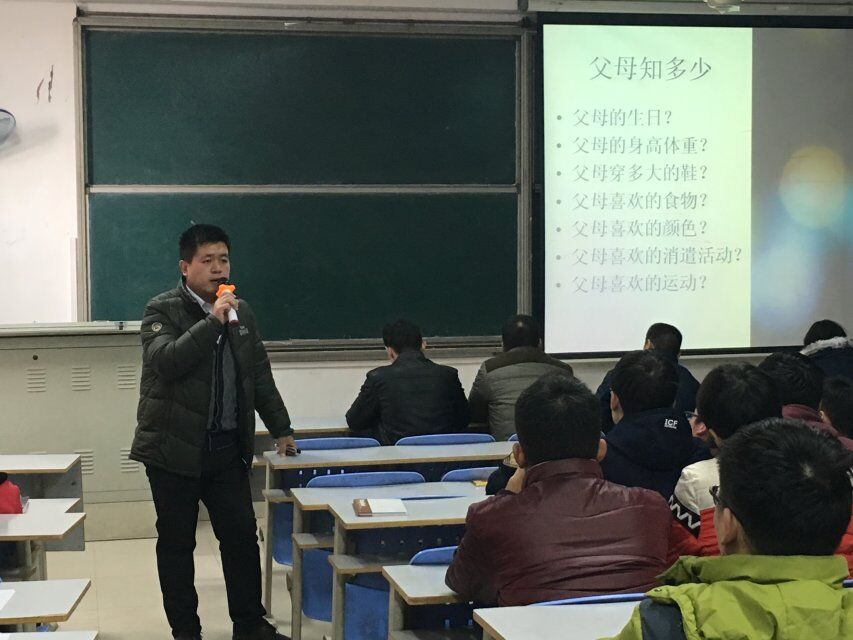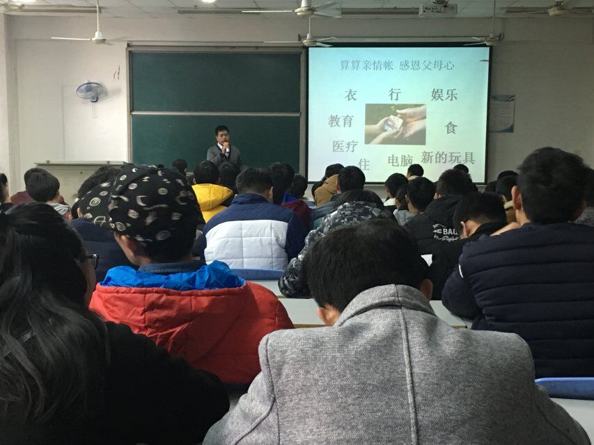 2016年11月25日中午由廖志雄老师主讲的感恩教育活动在12#合二举行,电气工程系副主任候小栓老师,团总支书记何钧锋老师,2016级辅导员冯丽娜老师,学生会全体成员和各班班委以及家庭经济困难同学参加了此次活动。