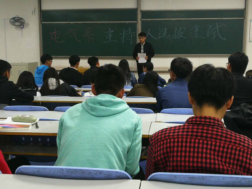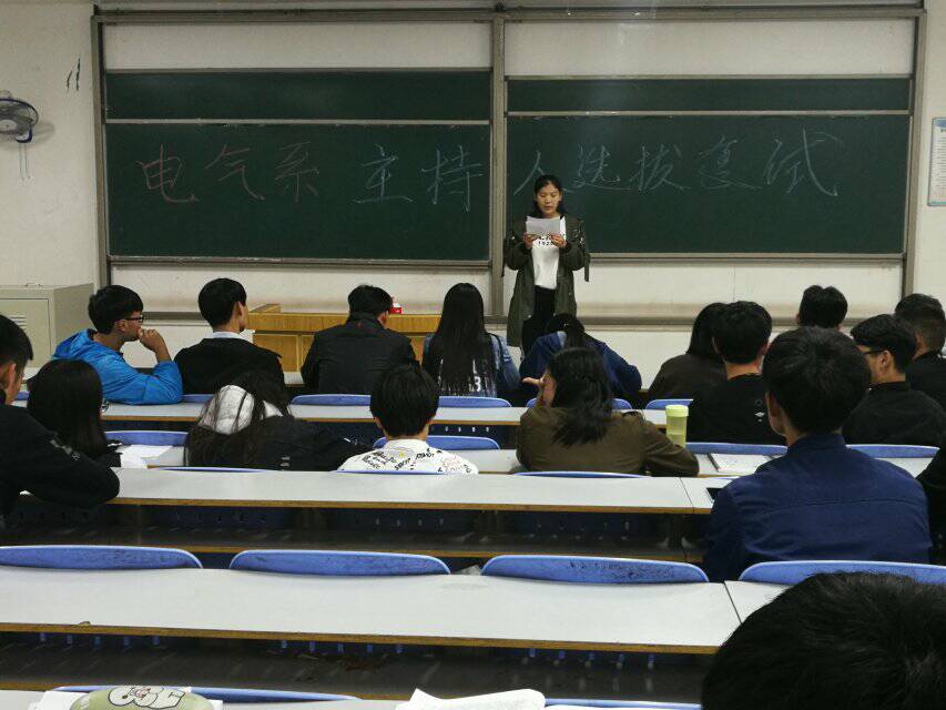 为了拓展大学生的综合能力,2017年10月18日晚上8点40分,在10#合2教师举行了主持人复试比赛。此比赛由学生会发起,出席本次选拔的评委有学生会主席团和部长。