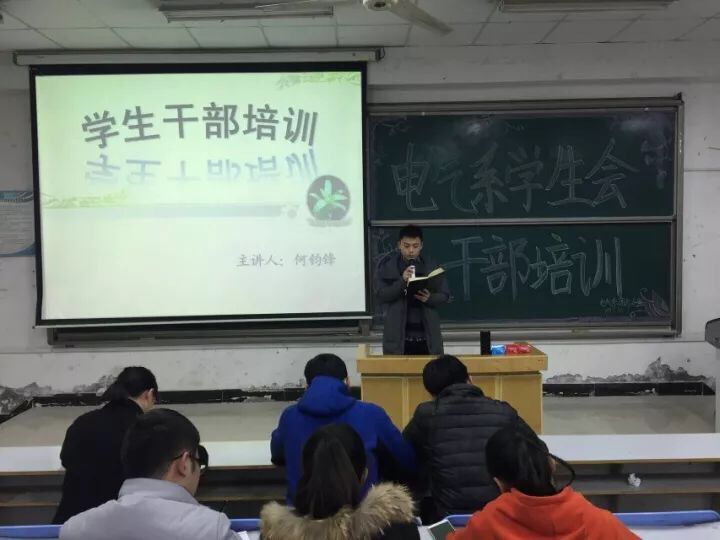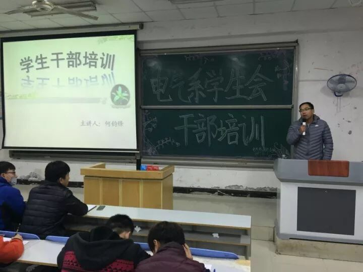 12月1日中午12:50,电气工程系第六届学生会干部培训第三讲在12#合五举行。电气工程系学生会团总支书记何钧锋担任主讲人。