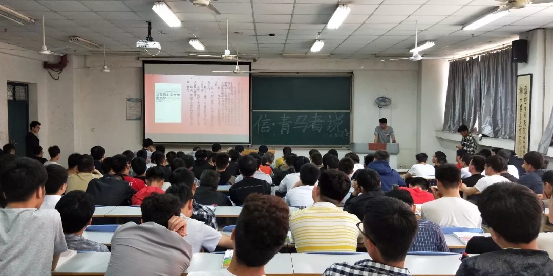本次团课活动以深入学习贯彻习近平新时代中国特色社会主义思想和学习党的“十九大”精神等内容为主题。首先团支书让同学们积极讨论并发言表达自己对“信·青马者说”的认识,然后又根据同学所说做了进一步的阐述和补充,利用PPT以及视频向同学们强调了马克思主义者提升自身素质的重要性,并要求同学们切实加强思想建设,坚定对马克思主义的理想信念,争当民族复兴大任的时代新人。