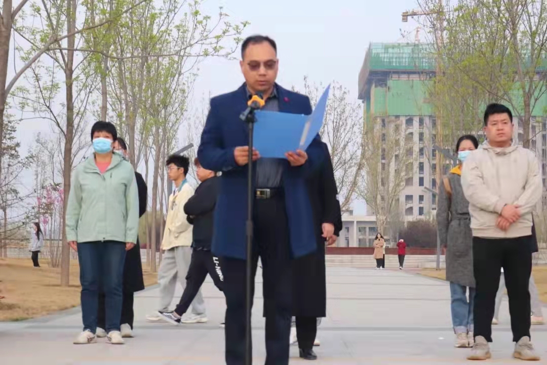 为大力弘扬革命先烈的奉献精神,加强爱国主义教育,4月4日,在清明节来临之际,机电工程学院开展以“缅怀革命先烈,继承光荣传统”为主题的清明节升国旗仪式。机电工程学副院长廖志雄、副书记武庆东、辅导员老师以及2021、2020级学生代表400余人参加仪式。升旗仪式由机电工程学院团总支书记何钧锋老师主持。