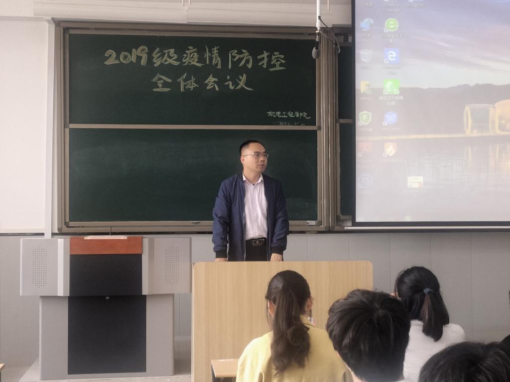 为提高同学们的学习动力,加强同学们的防疫知识,机电工程学院于5月10日15:00在教学楼1-307教室召开19级电子电气专业期末考前动员会暨疫情防疫会议。本次会议由19辅导员何钧锋老师主持召开,机电工程学院副院长廖志雄和电子电气专业19级全体学生参加。