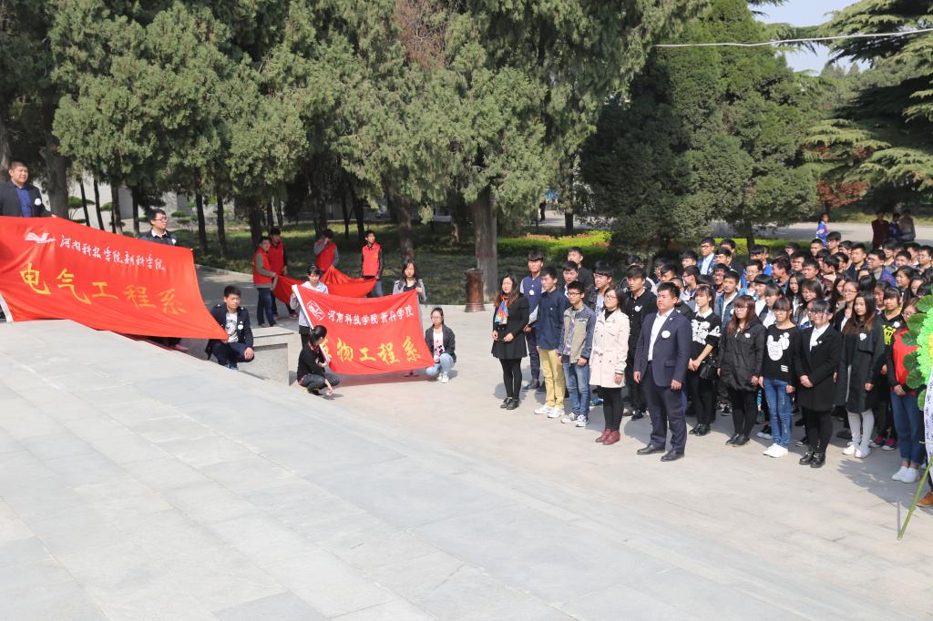 “鲜花寄哀思,豪言慰英灵”,4月1日,我院电气工程系组织师生前往新乡市烈士陵园进行祭扫活动,以此缅怀为祖国和人民英勇献身的革命前辈,弘扬烈士精神,告慰烈士英灵。