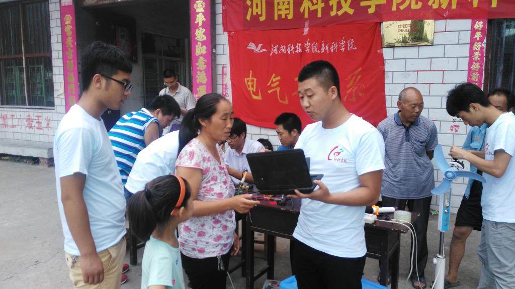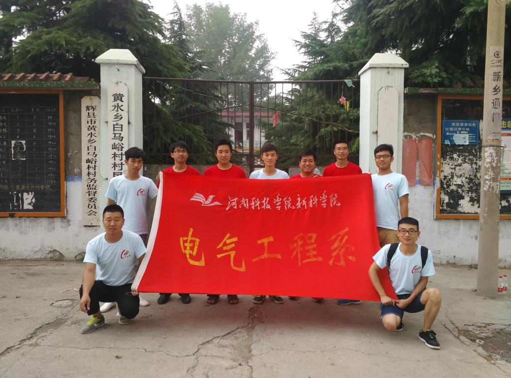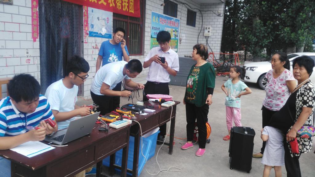 7月4日早上6点,由电气工程系副主任廖志雄、侯小栓,团总支书记张洪坤,教学秘书李余钱带队的“新科学院科技支农帮扶团”前往辉县市黄水乡白马峪村进行家电义务维修和防火防电安全宣讲活动。