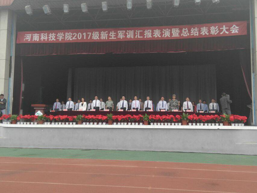为了检验2017级新生的军训情况,2017年9月29号上午8点,河南科技学院军训汇演在西操场隆重举行。出席本次汇演的有新科学院的领导以及教育局的领导。
