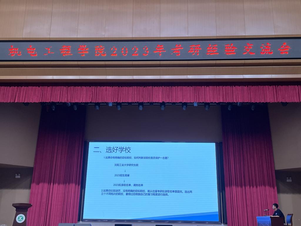 为了帮助同学们更好地了解当前考研形势,确立合适的考研目标,规划好自己的未来发展方向,2023年5月16日中午,机电工程学院在学院楼报告厅举行考研经验交流会。副院长廖志雄、副书记武庆东、全体辅导员和2024届毕业生参加了会议。