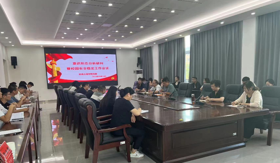 2023年9月14日下午,我院在综合实验楼201召开意识形态暨安全稳定工作会议,机电工程学院院长高金辉教授、副院长廖志雄、副书记武庆东、全体辅导员及专职教师参加了会议,会议由机电工程学院副书记武庆东主持。