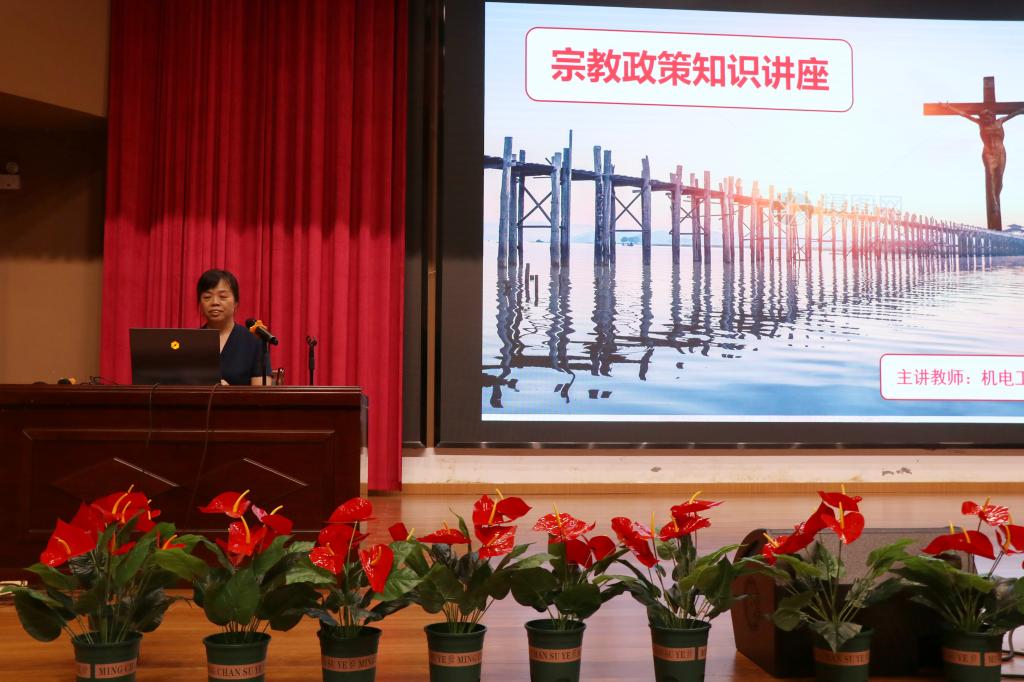 为深入贯彻落实党的宗教工作方针政策,进一步筑牢学生抵御和防范宗教势力向校园渗透的思想防线,帮助学生树立马克思主义宗教观,推动普及宗教政策,宣传国家有关法律法规。机电工程学院于2023年9月22日晚在B3报告厅开展了党的宗教政策知识专题讲座。本次讲座由党委副书记武庆东主讲,23级全体学生参加。