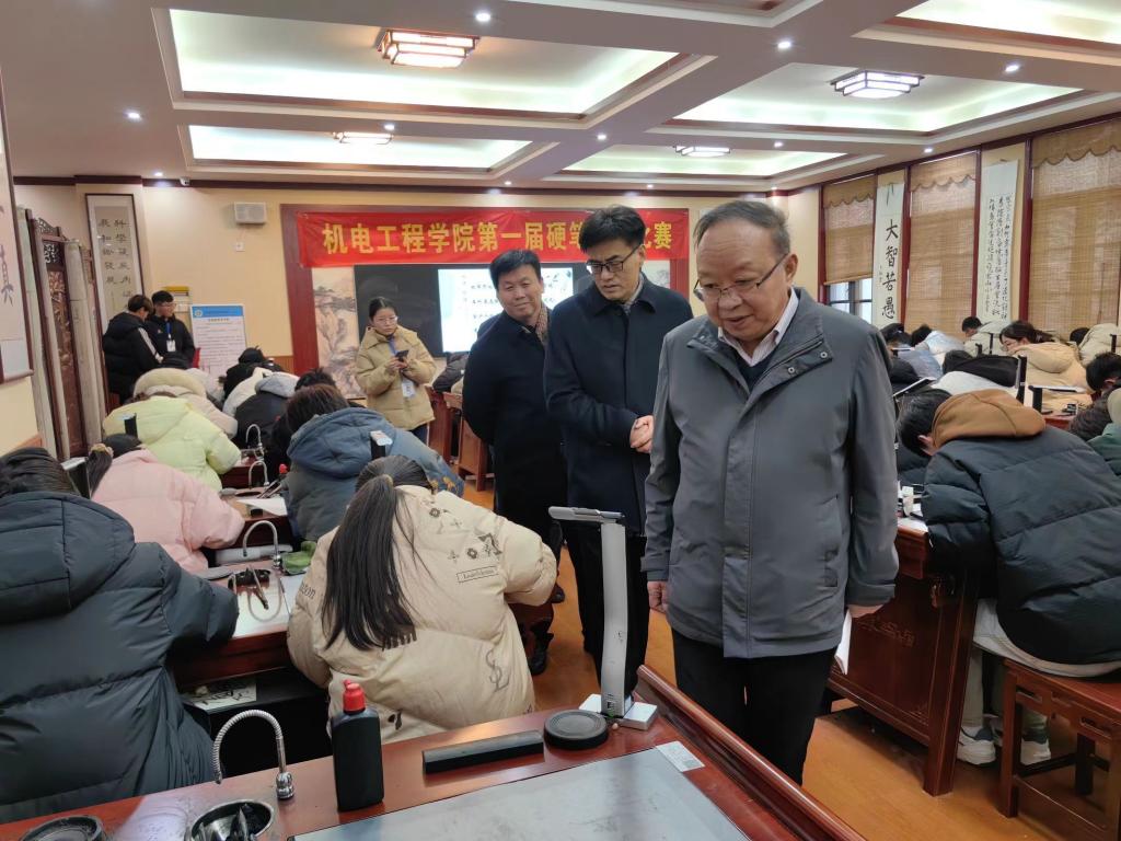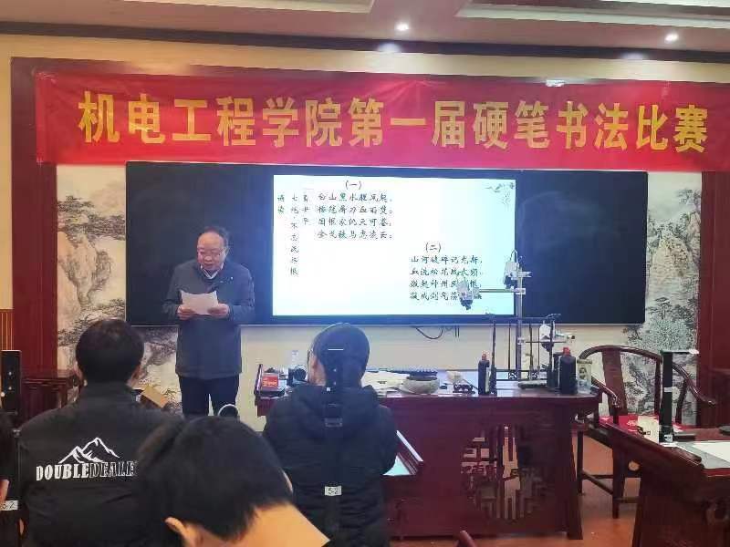 承传统文化,塑时代英才,为弘扬书法传统文化,提高机电学院学生的书写水平,我院于12月13日中午在学院楼1-A314和B319书法实验室举办首届硬笔书法比赛。副校长赵一鹏、张彦军,校长助理李帅军、杜灵来一行莅临现场指导观赛。我院党委书记、院长高金辉教授、副书记武庆东等陪同指导。