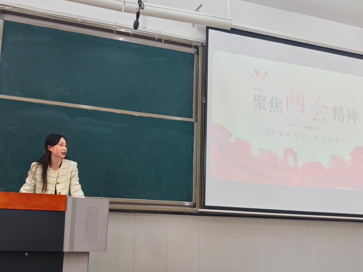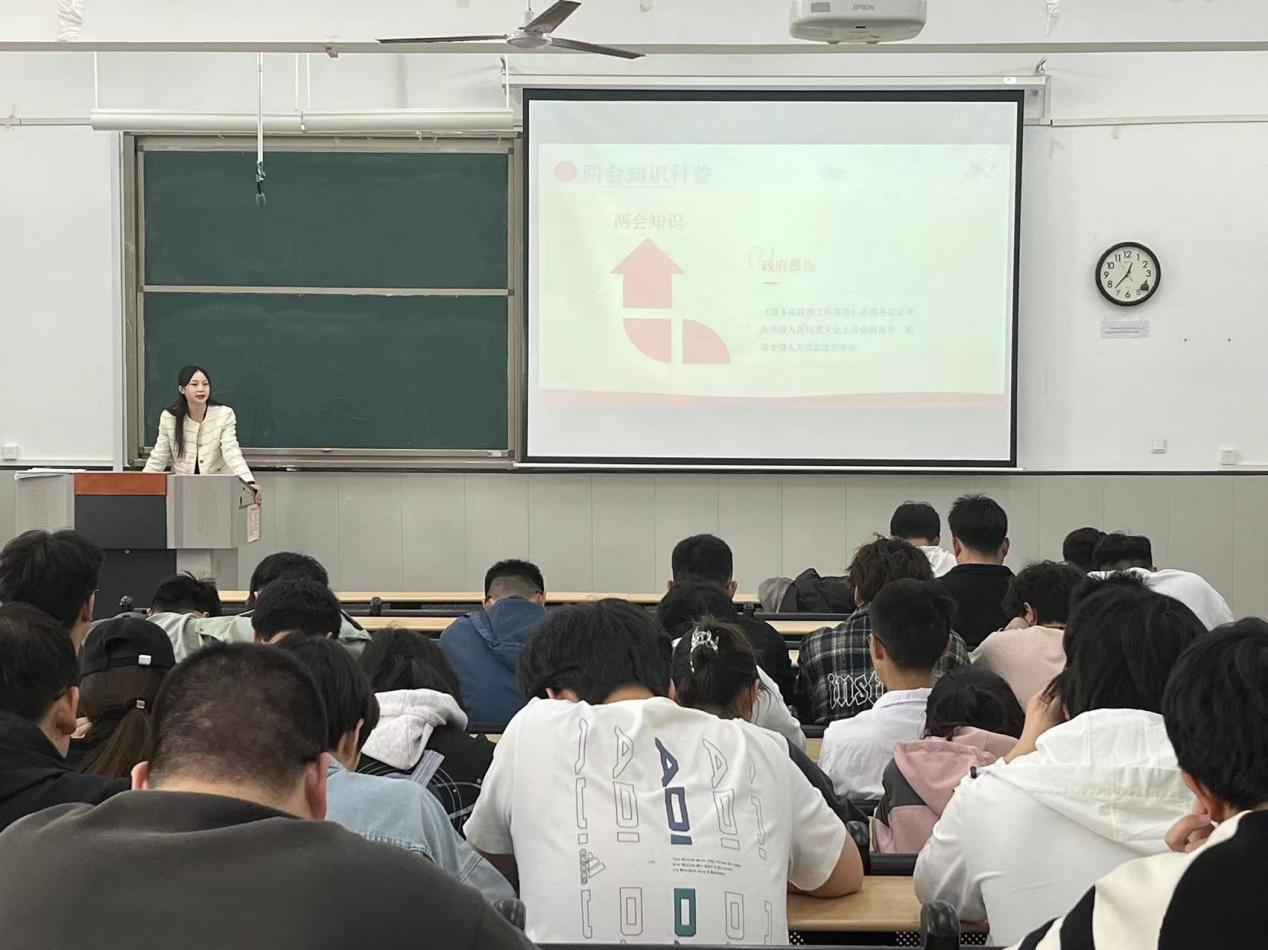 为深入贯彻学习新时代新思想,引导学生关注国情民生,涵养家国情怀,加深同学们对两会精神的学习,增强同学们的民族自信。4月1日,机电工程学院在教学楼1-207召开春季思政主题教育课,由我院辅导员杨雨晴老师主讲,全体大一学生参加。