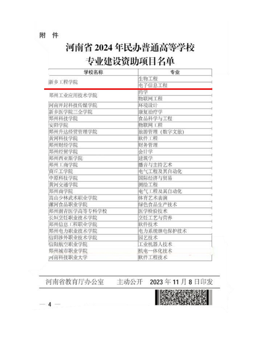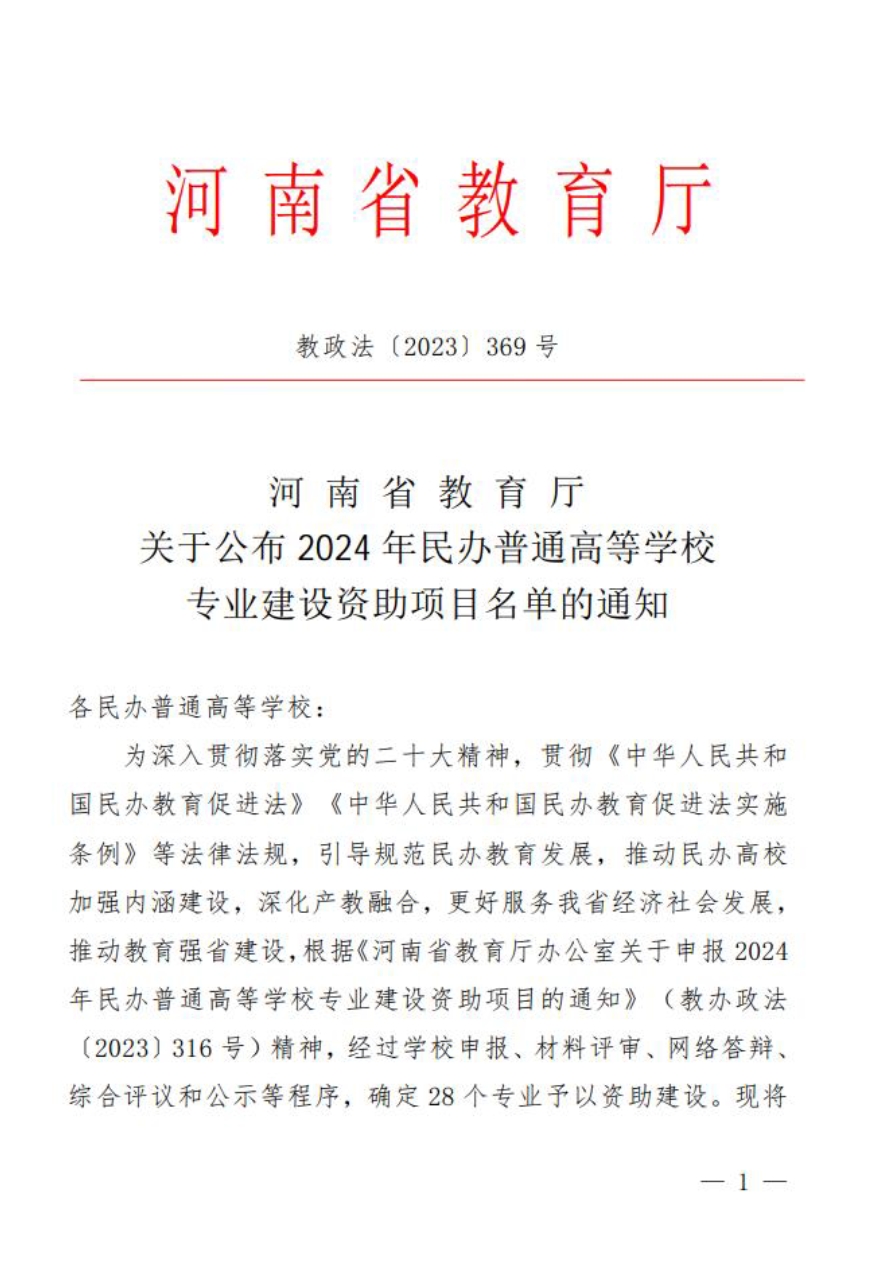 近日,河南省教育厅发布了《关于公布2024年民办普通高等学校专业建设资助项目名单的通知》教政法〔2023〕369 号,我院电子信息工程专业获批2024年民办普通高等学校专业建设资助项目。