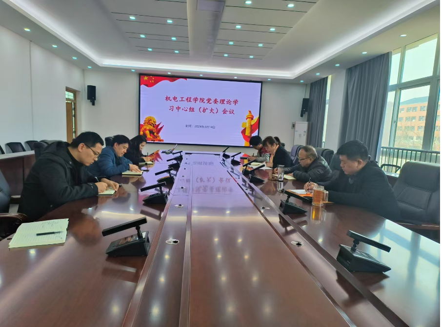 10月17日下午,机电工程学院党委理论学习中心组在综合实验楼201会议室集中学习习近平在全国教育大会上的讲话精神,院党委副书记武庆东主持,机电工程学院党委理论学习中心组成员及各党支部书记出席。