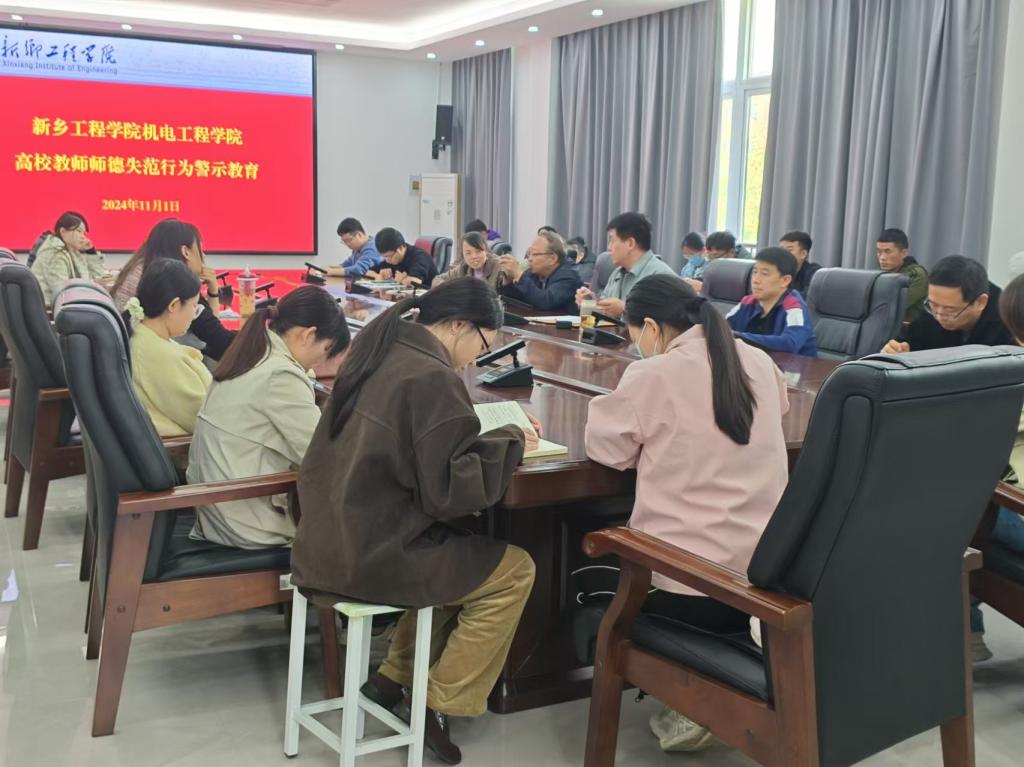 为深入学习贯彻习近平总书记关于教师队伍和师德师风建设的重要论述,进一步加强师德师风建设,增强教师的行为修养,11月1日下午,机电工程学院在综合实验楼201会议室召开了高校教师师德失范行为警示教育会议。本次会议由机电工程学院副院长廖志雄主持,院长高金辉和全体教职工参加会议。